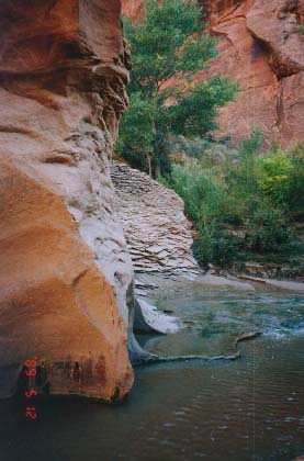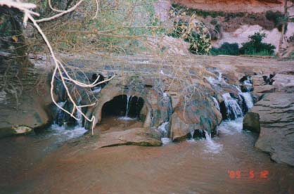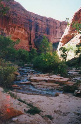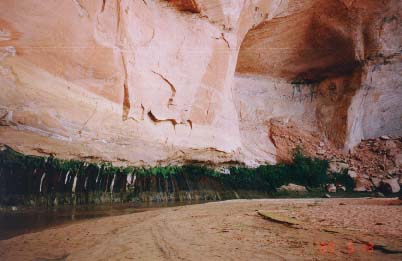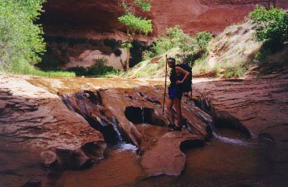 The next day Jim elected to spend the day hiking to Fool's Canyon, located north of Coyote Gulch, and Heather and I headed down the canyon to the Escalante River. On our way back we met up with a couple of older fellows, in the American Airforce, who were showering under one of the waterfalls.