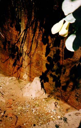 At one spot, the water poured out of the cliff wall in sufficient quantity to quickly fill a water container. A young fellow Heather's age was playing around with a stick in the water beside the spring. She waited for a while for him to move out of her way, but he just kept fooling around in the water, so she butted in to the pouroff to fill up the cooking pot.